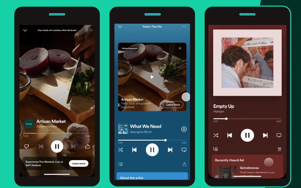 Spotify広告の特徴その1. 3つの形で広告を配信することが可能
