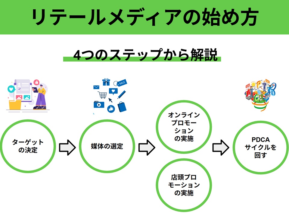 リテールメディアの運用を始めるには、以下のステップを踏む必要があります。