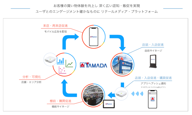 2021年には「ヤマダデジタルAds」として本格的に事業化し、サイバーエージェントと共同で、顧客IDと購買データを統合した広告配信を実施。メーカーのニーズに応じたターゲティング広告を提供し、実店舗とECサイトの双方で売上向上を目指しています。