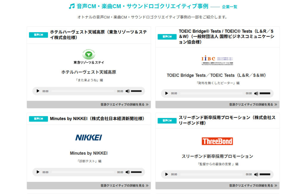 オトナルの音声CM・楽曲CM・サウンドロゴクリエイティブ事例はこちら。