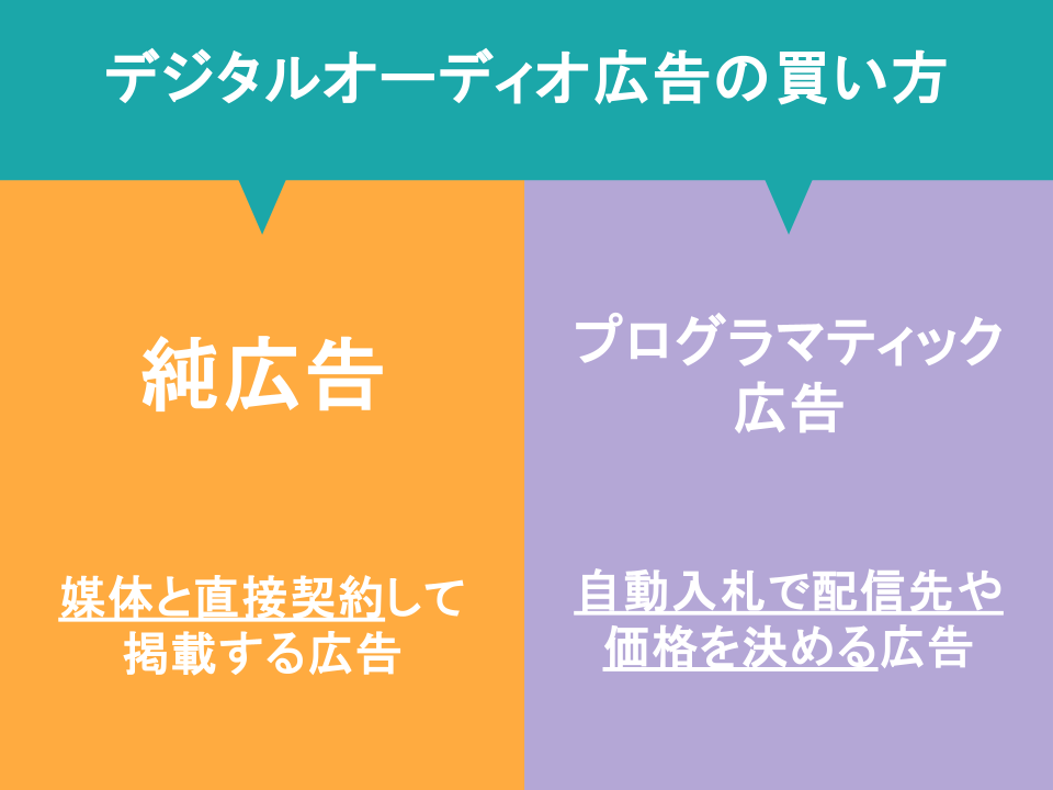 デジタルオーディオ広告の買い方は、以下の2種類があります。