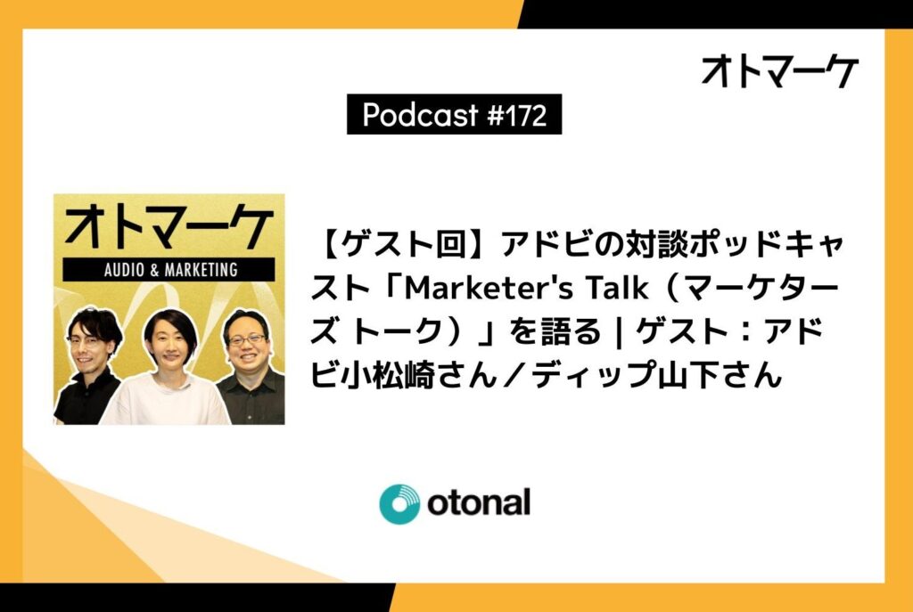 #172 【ゲスト回】アドビの対談ポッドキャスト「Marketer's Talk(マーケターズ トーク)」を語る|ゲスト:アドビ小松崎さん/ディップ山下さん