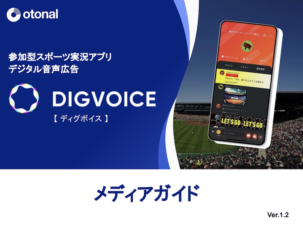 参加型スポーツ実況アプリ「DIGVOICE(ディグボイス)」内の広告枠にデジタル音声広告を配信することができます。