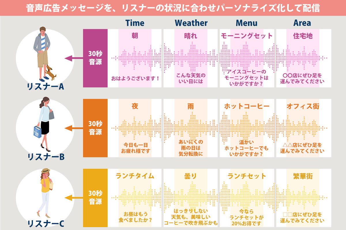 音声広告メッセージを、リスナーの状況に合わせパーソナライズ化して配信
